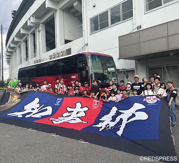 試合前、事前応募で当選した参加者は、浦和駒場スタジアムに到着したばかりの選手バスの見学や、選手を代表して水谷有希が登場し、参加者と記念撮影などで交流を図った。水谷に加え、ディアラちゃんも入った、バスの前で、5m×10mの大きな『知事杯』の横断幕と共に記念撮影。
