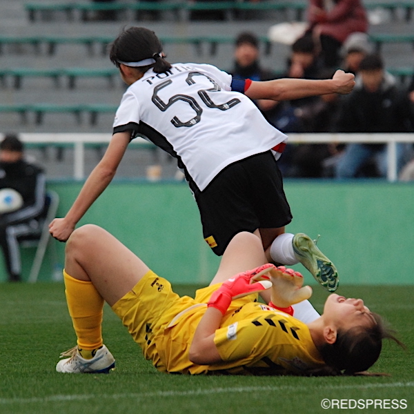 11時キックオフ。レッズレディースシ?ュニアユースは2年連続の決勝進出を果たし、INAC神戸レオネッサのアカデミーチームであるINAC神戸テソ?ーロと対戦した。