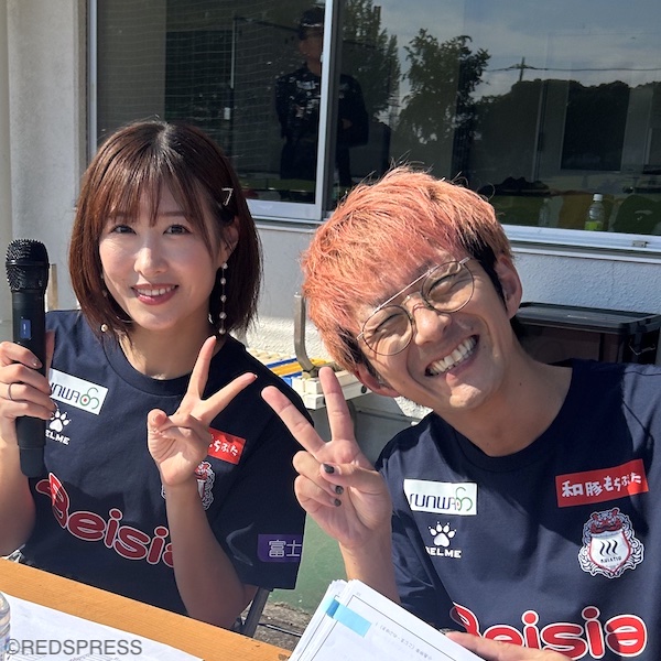 群馬県出身で、吉本興業・群馬県住みます芸人のアンカンミンカン・富所哲平さんと、2008年から8年間、ザスパ群馬の応援ラジオ番組でMCを務めた南まりかさん。まりかさんは、浦和、ザスパのOBであり、現在はクリアソン新宿でプレーする小池純輝の奥様だ。