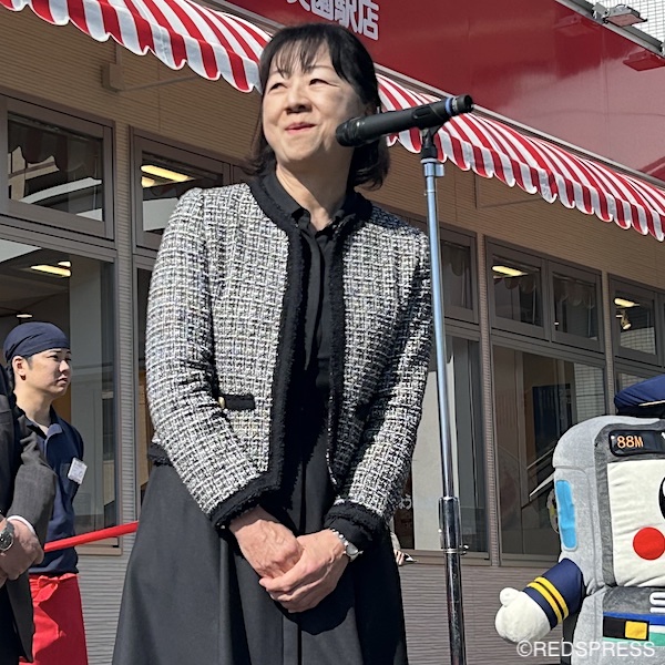記念撮影、テープカットのあと、浦和美園駅店の吉田裕貴店長による開店宣言では「ぎょうざの満洲では、『おはようございます』というひと言から1日が始まります。私たち、ぎょうざの満洲のスタッフ一同、美味しい餃子と心地良い接客で、地域の皆さまに愛される、そんなお店を作っていけるよう頑張っていきます」と晴れやかな声で意気込みを伝えた。