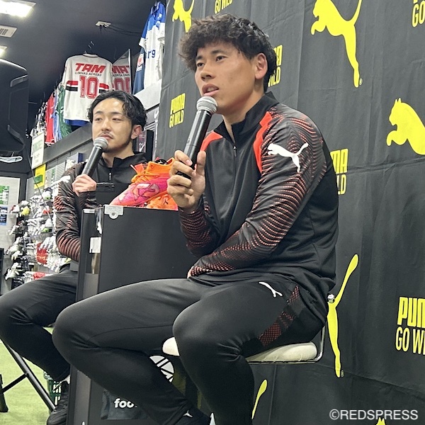 トークショーでは、日頃から着用するPUMA『FUTURE』の好む部分やこだわり、会場に集まった子供たちから質問を受けたり、サイン入りプレゼントをかけたじゃんけん大会などでコミュニケーションを図った。「きのう(ファジアーノ岡山戦)に・・・・・・