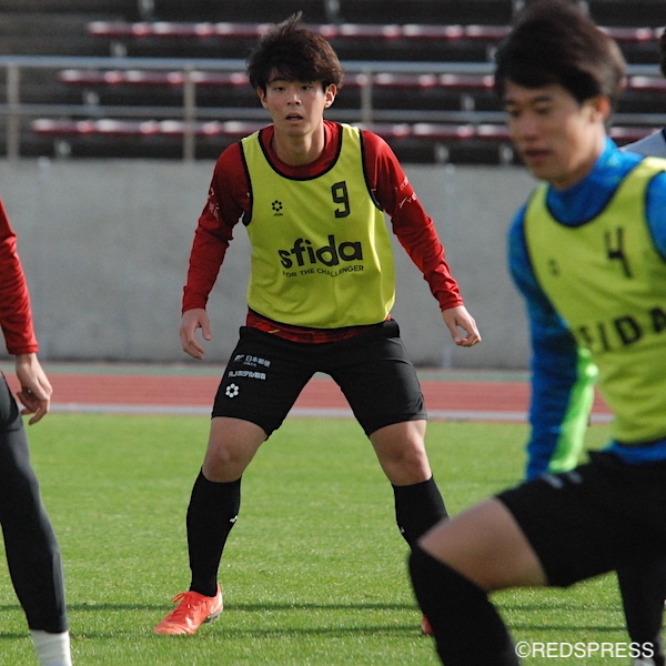 「悔しさをぶつけてきます」と選択した育成型期限付き移籍の延長。新天地・FC琉球で、ボランチを主戦場にトレーニングに励んでいた。