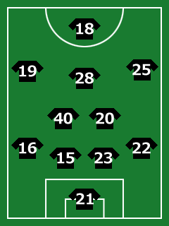 MF:20柴崎岳・40小笠原満男・25遠藤康・28土居聖真・19豊川雄太
